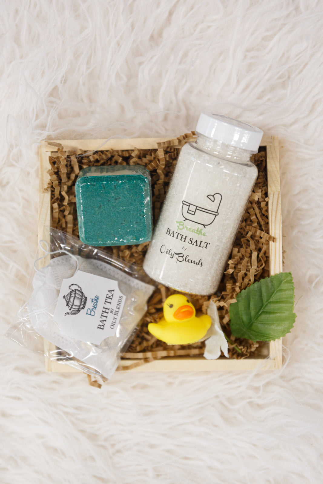 The Bath Collection Gift Set is essential for the holiday seasons! Each set comes with a rubber ducky, 1 hand mixed bath bomb, bath salt, and bath tea.