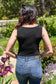 Keywords: Black, Ribbed, Bodysuit, Deep V-Neck, Tank