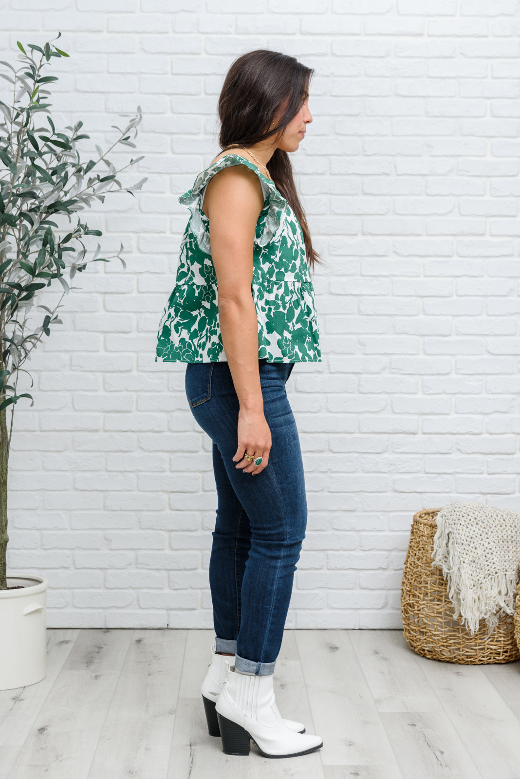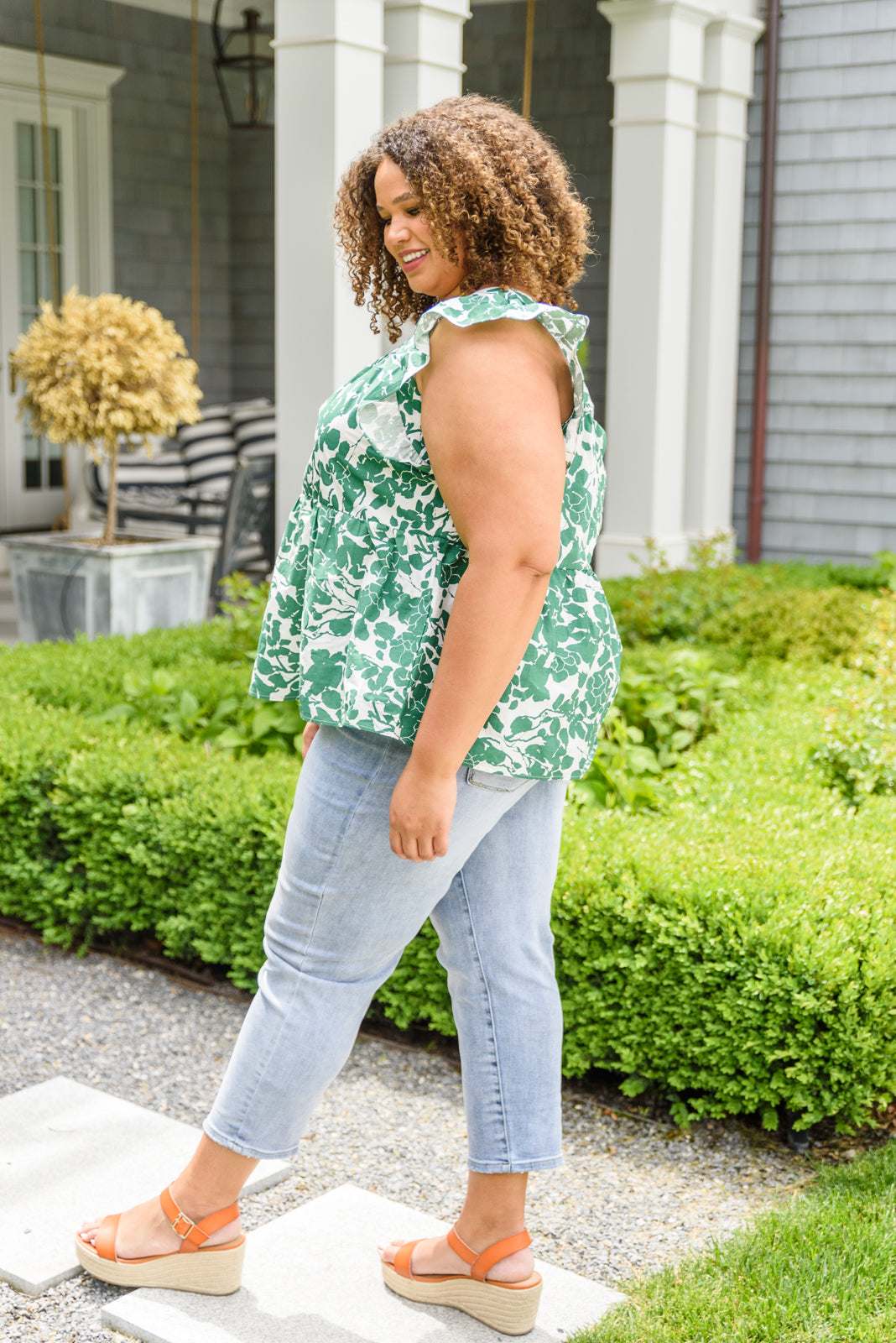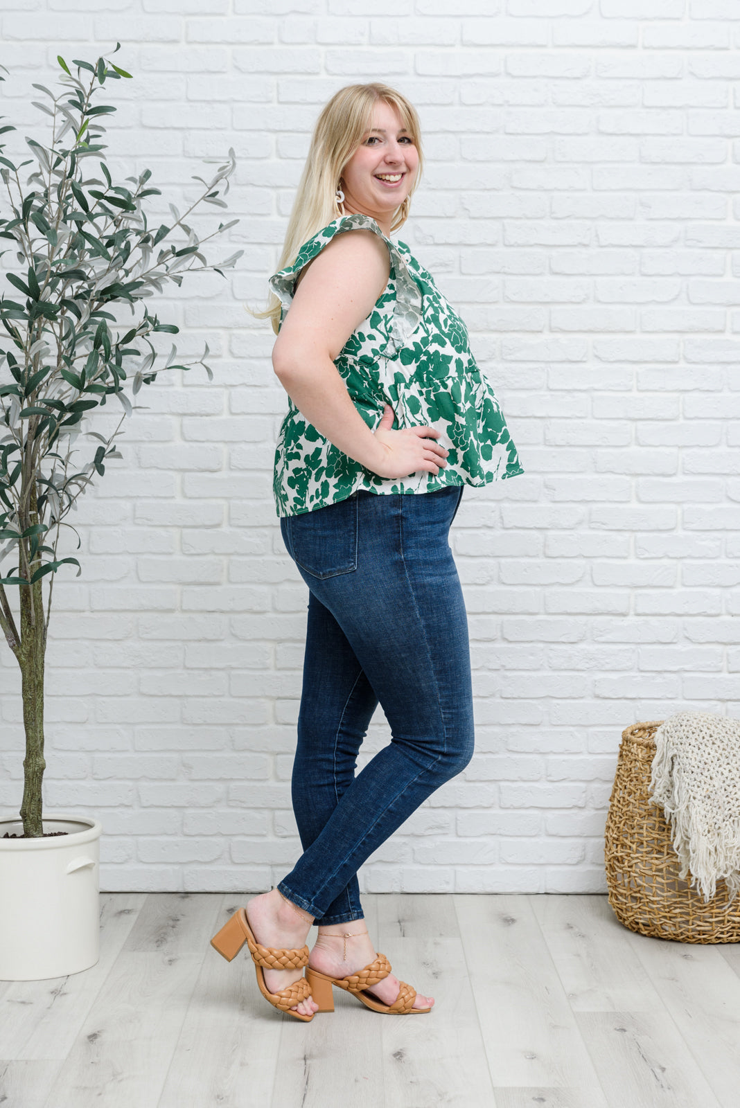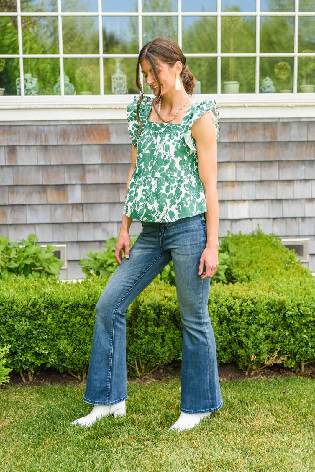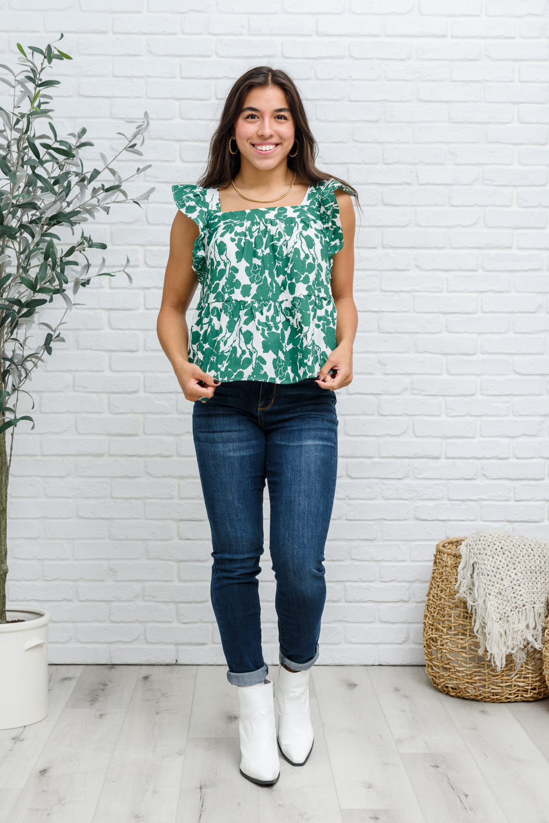 We are print obsessed! The Ooh La La Top is painted in a chic floral print in a beautiful shamrock green color! Not only is the print amazing, we also haven't stopped thinking about the beautiful details like the square neckline, ruffle sleeves and babydoll silhouette! Pair with your favorite jeans, and nude heels for a cute and stylish look!