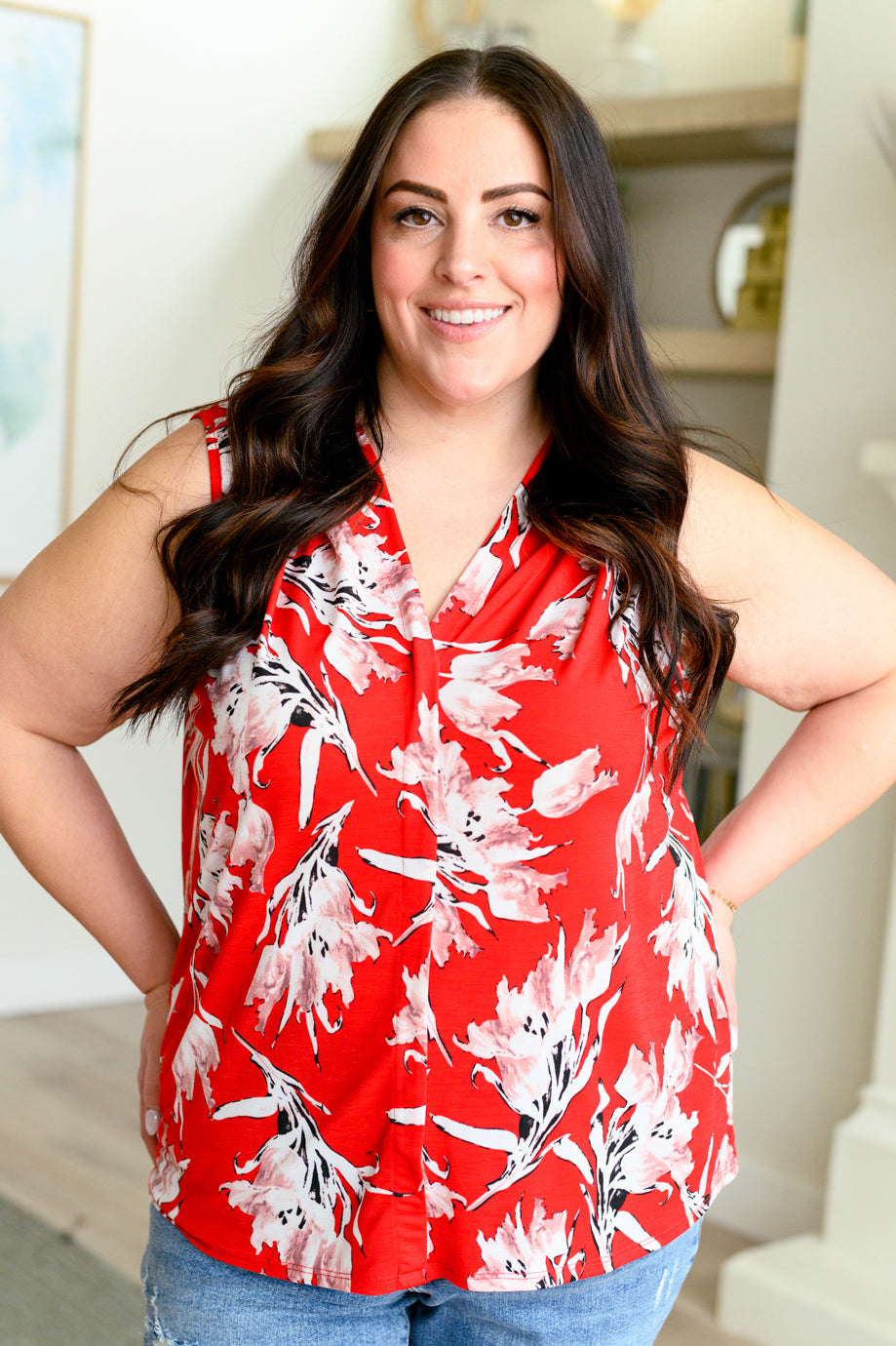 Transform any outfit with our Please Don't Stop the Music V-Neck Tank! Featuring a flattering v-neckline, elegant pleat front detail, and a vibrant floral print, this sleeveless tank is perfect for any occasion. Add a pop of color and sophistication to your wardrobe that will turn heads and make you feel confident and stylish.