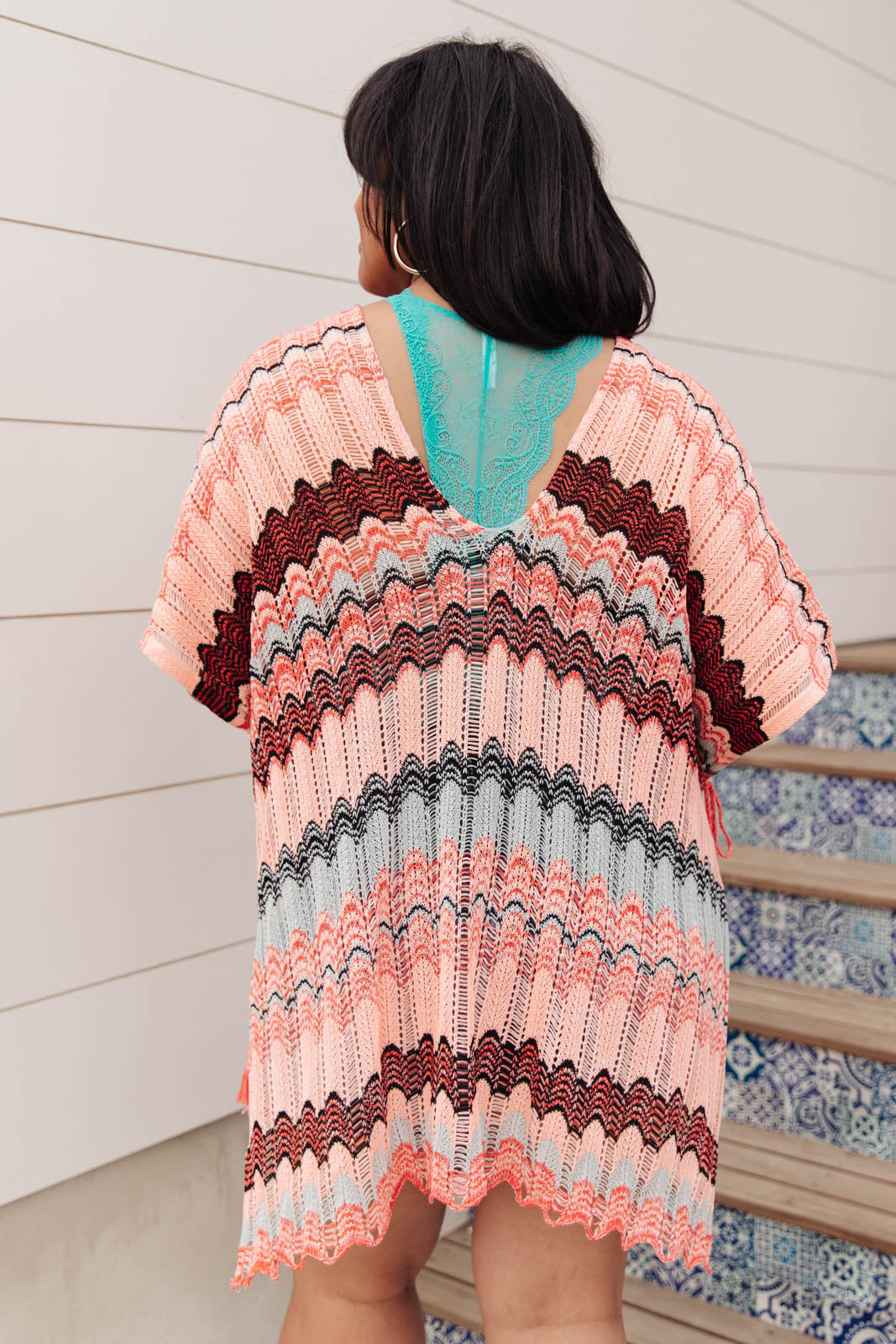 With a summer of sand and surf on the horizon, we have the perfect swimsuit cover up for you. We love the eye catching scalloped stripes and cute tassel details that set this woven cover up apart. Throw on this beautiful item on your way to the pool or to shield from extra sun rays after a day at the lake.