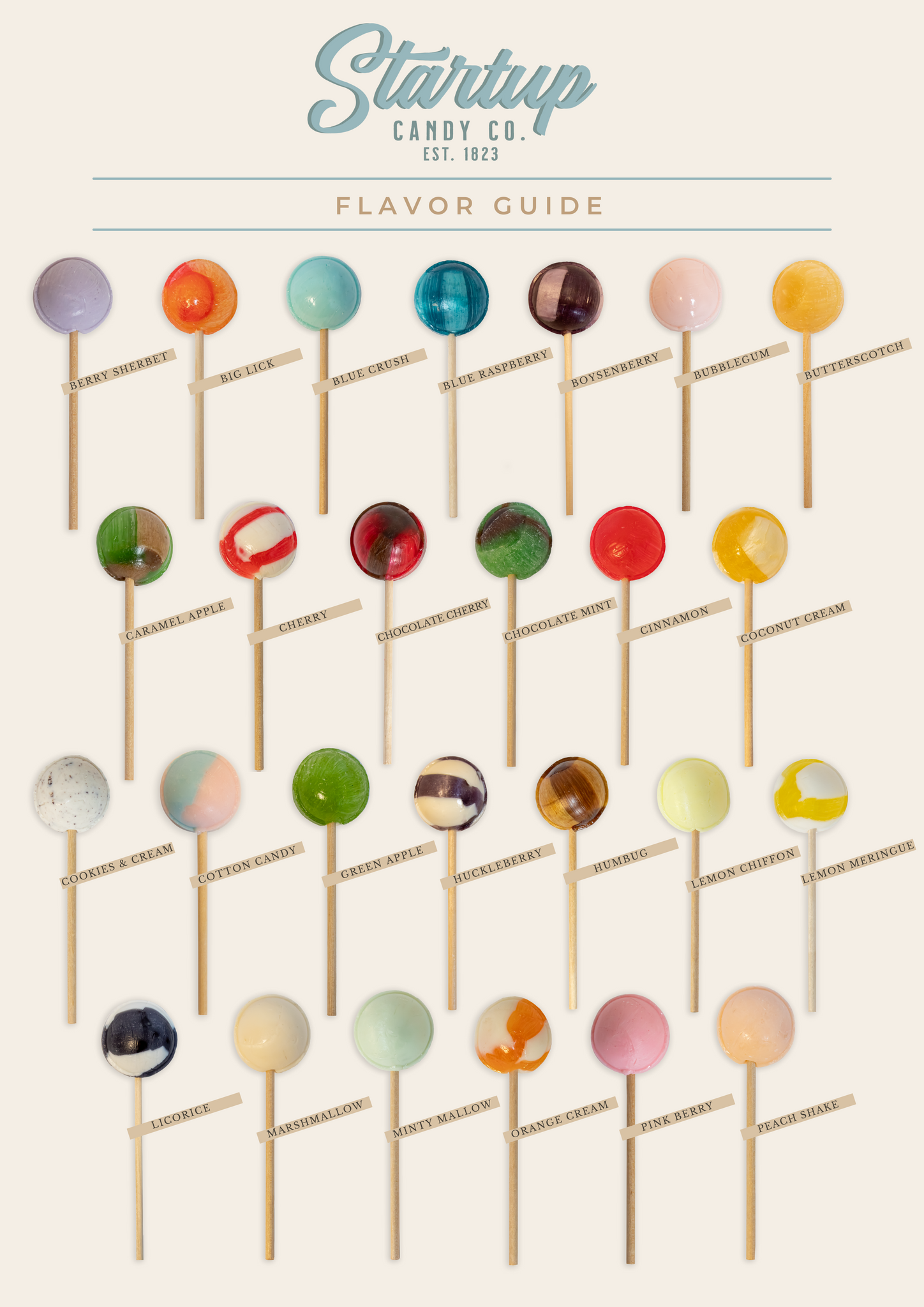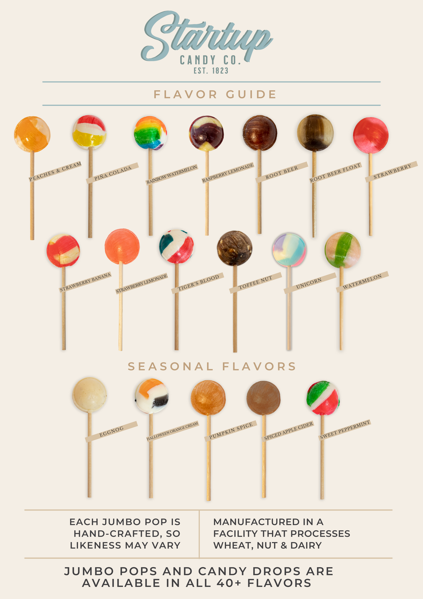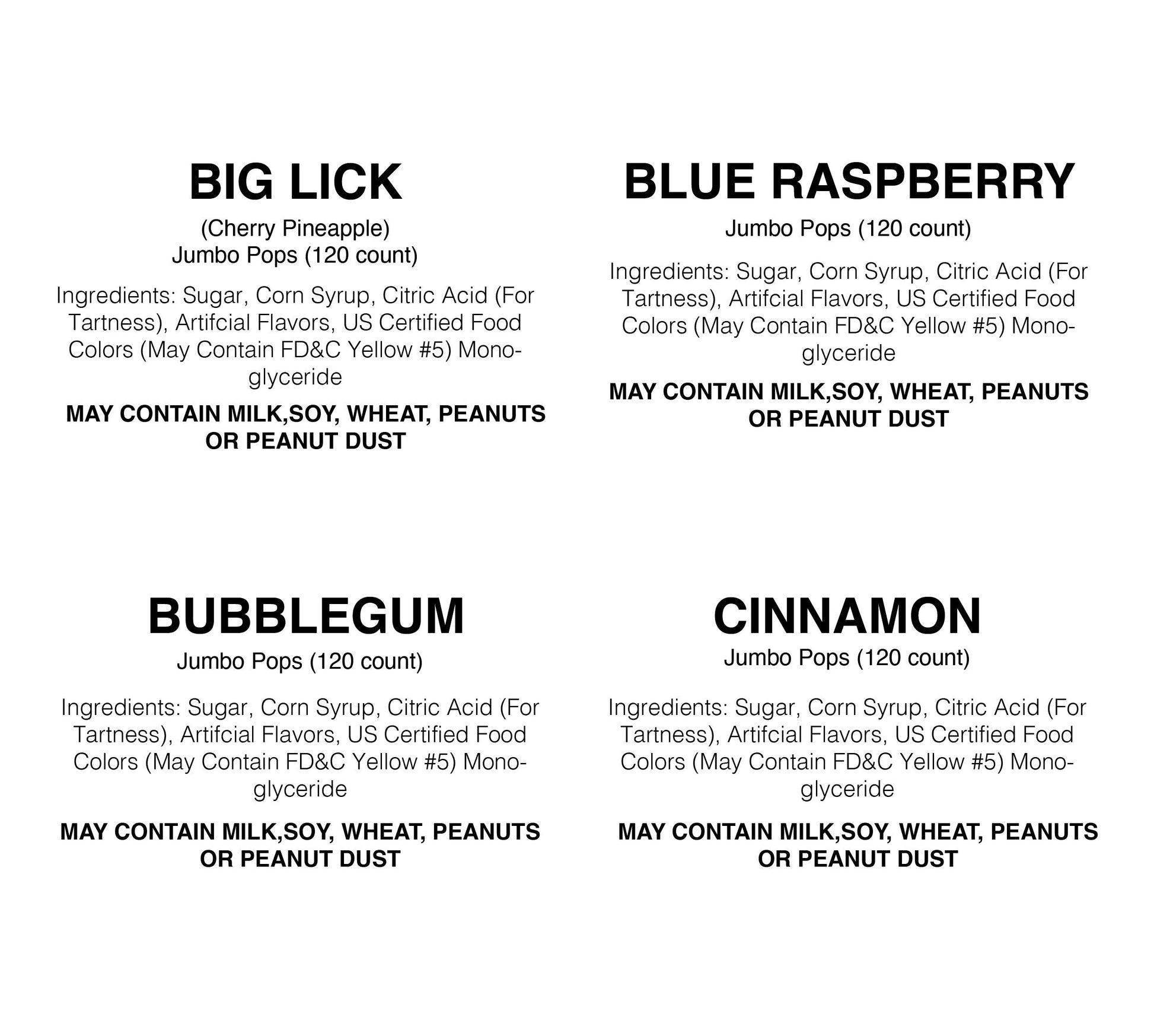 A single wrapped Jumbo Pop, over 40 flavors to choose from. Each Pop is hand-crafted with the same recipe that has been used for over 150 years.
